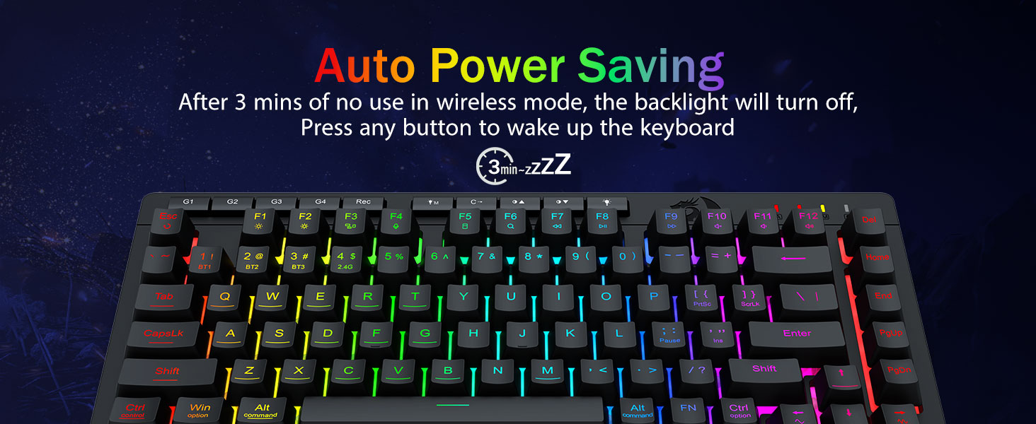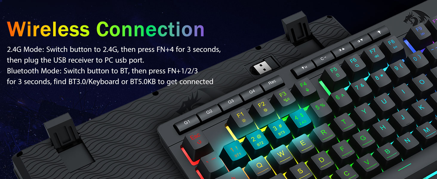 يمكنك تبديل الأجهزة بسهولة عبر مفاتيح الاختصار أو الزر الجانبي، مما يجعلها مثالية لإعدادات العمل/الألعاب المختلطة. استمتع بالطاقة لأسابيع مع بطارية تبلغ سعتها 4000 مللي أمبير في الساعة (أكثر من 30 يومًا في وضع الاستعداد، ووقت تشغيل RGB لمدة 50 ساعة).