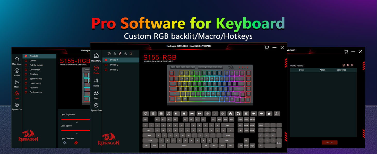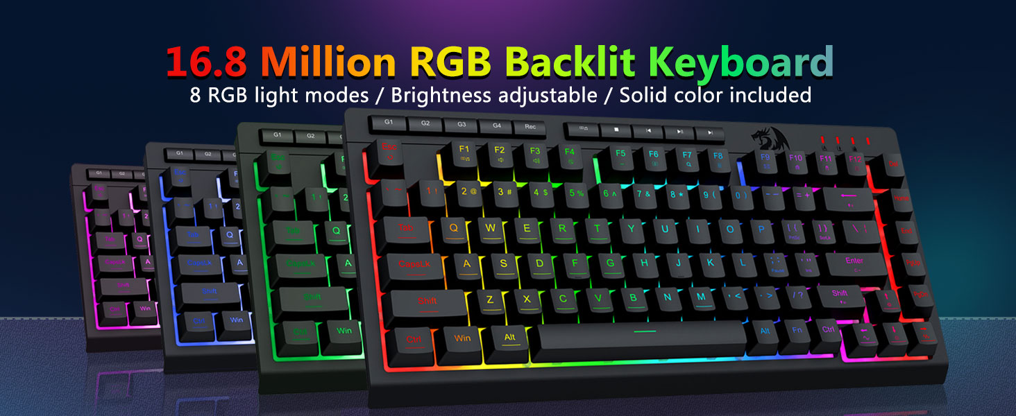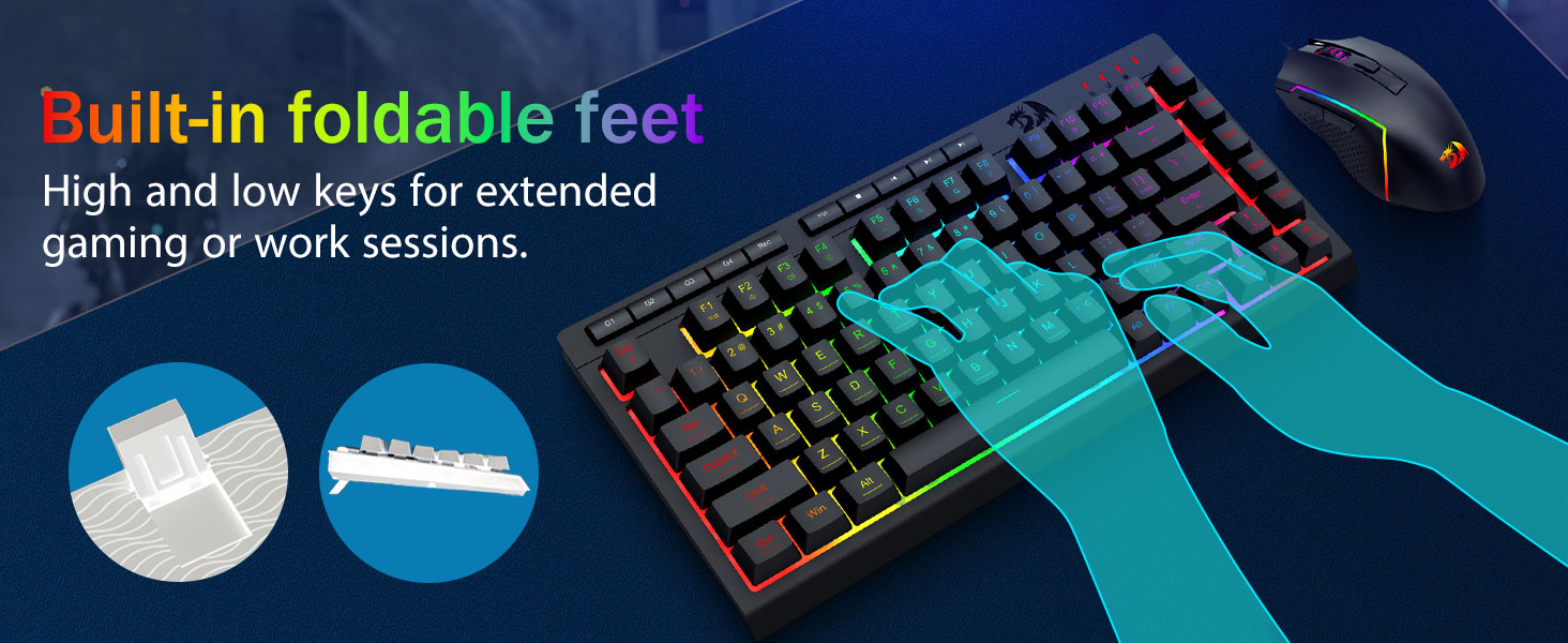 【لوحة مفاتيح وماوس ألعاب RGB】تحتوي لوحة مفاتيح الألعاب على 8 أوضاع إضاءة RGB للاختيار من بينها، كما يحتوي ماوس الألعاب على 8 تأثيرات إضاءة للتبديل بينها، ويمكن تعديل لوحة المفاتيح للحصول على 4 مستويات من السرعة والسطوع لتناسب تفضيلاتك. توفر أغطية المفاتيح إضاءة خلفية موحدة واضحة. سواء كانت المجموعة عبارة عن ضوء واحد أو تأثيرات ضوئية متغيرة أو بدون ضوء على الإطلاق، فإن لوحة مفاتيح وماوس الألعاب Redragon سوف تلبي احتياجاتك!