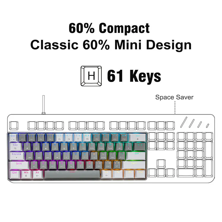 لوحة مفاتيح سلكية ميكانيكية محمولة بنسبة 60% للألعاب